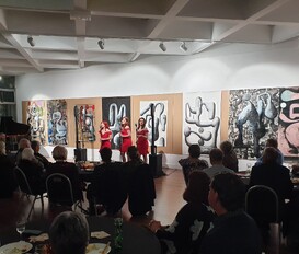 The Madeleines was an evening full of music, dance, art, and beauty. One hundred patrons enjoyed this fantastic international singing trio based in Auckland. The show mixed songs from the 1950s to the 1980s and proved that Morrinsville loves top entertainment! There was also a successful art auction, with local auctioneer Kevin Deane ensuring that those who gathered added to their art collections while supporting the Gallery's fundraising efforts. "Over $17,000 was raised, and this will help with the financial shortfall that the Gallery is experiencing in these difficult financial times," said one of the organizers, Jane Fergusson. "We were very grateful to our sponsors for the night, and it's great when the community comes together to support the Gallery and have a fabulous night out," Jane said. The Morrinsville Gallery Family