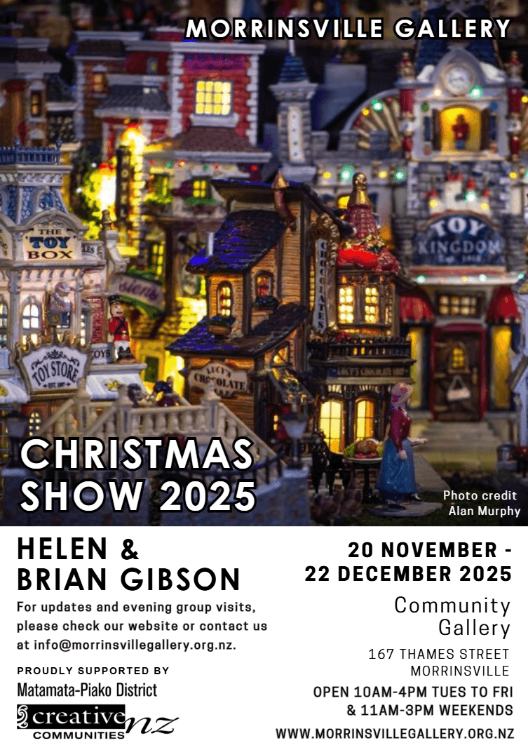 (Please use “Gift 2025” as the reference - Please note, donation tax receipts are happily issued on request, email info@morrinsvillegallery.org.nz with your name, address, the amount and date of donation and we will reply with a receipt).