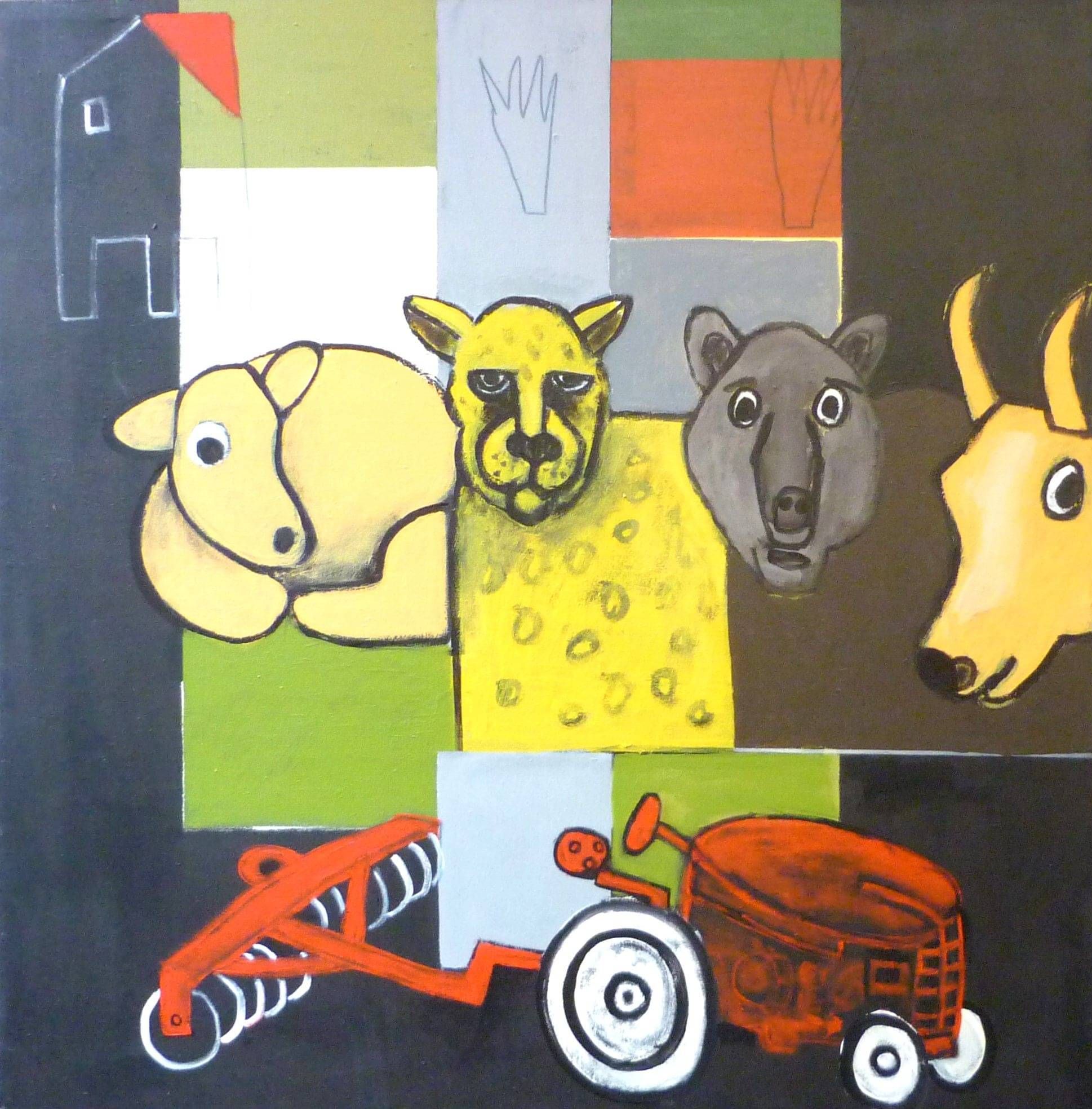 My husband, Bob, now frames my paintings with cypress wood harvested from trees we planted on our farm—another step toward sustainability and self-sufficiency. My work often explores the interface between freedom and control. I've come to realise that whether you're a child or an adult—navigating politics, religion, society, or any life journey—freedom almost always comes with rules. I begin with geometric shapes, using brush and pencil to explore variations in hue and line. Often, I use a grid to introduce structure and bring order for the viewer. Finally, expressive, handmade brushmarks add energy, spontaneity, and life to the work.