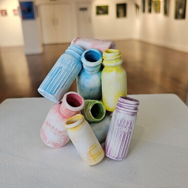 Sarah is a ceramic artist that works from her home studio in Te Aroha. She enjoys the process of playing with clay and even appreciates the brutal lessons in letting go when the fragility of the medium clashes with her naturally uncoordinated limbs. This selection of work began as an experiment, revisiting and reimagining with slip cast porcelain. some of the first ceramic works she ever made and trying to merge them with some of the hand built sculptural ideas that she is currently playing with.